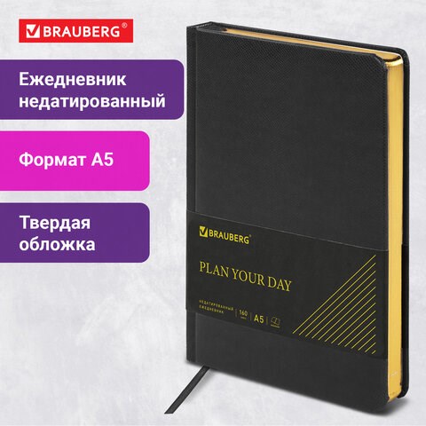 Ежедневник недатированный А5, 138х213 мм, BRAUBERG "Iguana" под кожу, 160 л., черный, 125089