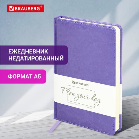 Ежедневник недатированный А5 138х213 мм BRAUBERG "Imperial" под кожу, 160 л., фиолетовый, 111854