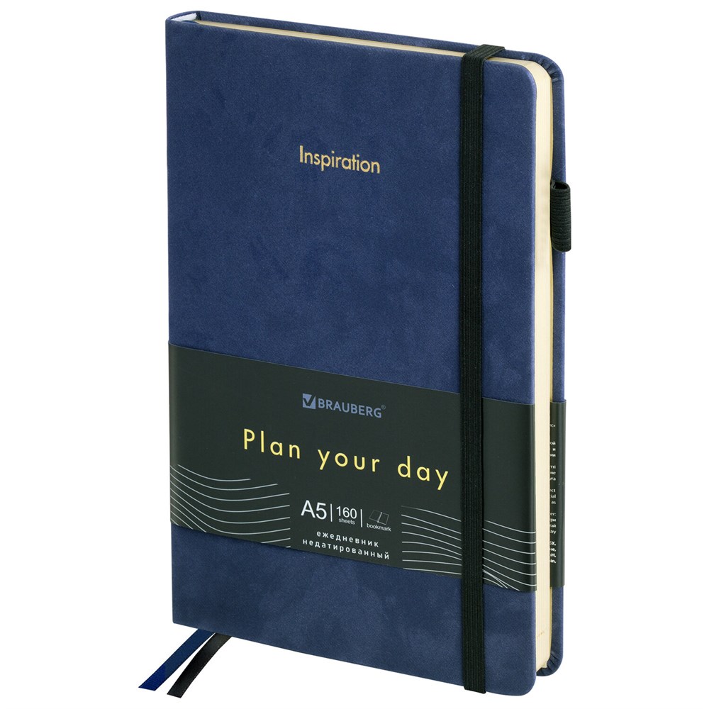 Ежедневник недатированный А5 138x213 мм, BRAUBERG "Velvet", резинка, держатель, 160 л., синий, 116243