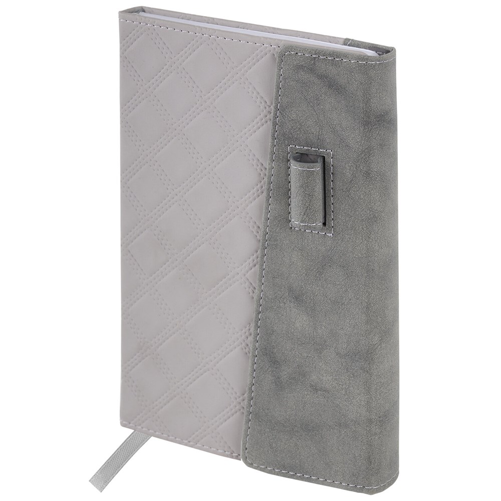 Твёрдая обложка стилизована под кожу со стёганым рисунком и подходит для горячего тиснения. Ежедневник снабжён держателем для ручки и магнитной застёжкой, благодаря чему не откроется в сумке или портфеле. Уголки ежедневника закруглены.