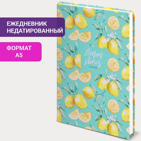 Ежедневник недатированный А5 (145х215 мм), ламинированная обложка, 128 л., STAFF, "Lemon Stories", 113529
