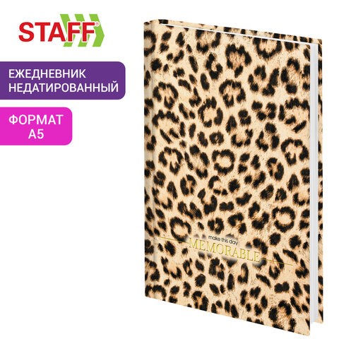Ежедневник недатированный А5 145х215 мм, ламинированная обложка с фольгой, 160 л., STAFF, "Леопард", 115567
