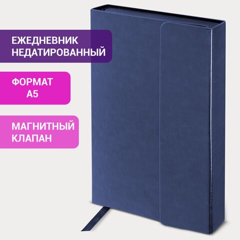 Ежедневник недатированный А5 (148х218 мм) GALANT "Magnetic", кожзам, магнитный клапан, 160 л., синий, 111879