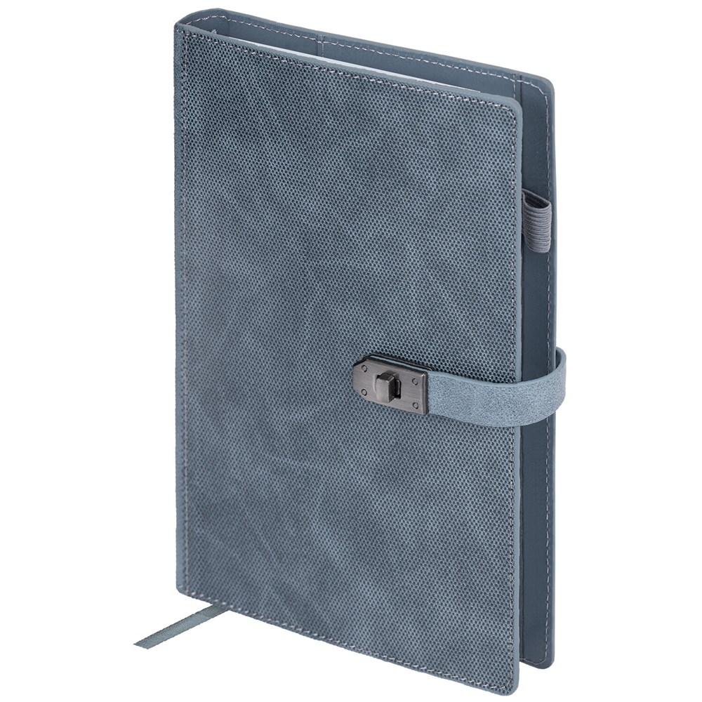 Ежедневник недатированный А5 152х220 мм BRAUBERG "Sirius", под кожу, застежка 160 л., серый, 116214