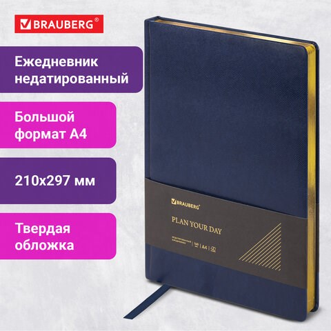Ежедневник недатированный БОЛЬШОЙ ФОРМАТ 210х297 мм, А4, BRAUBERG Iguana, 160л, синий, 114451