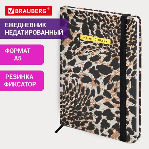 Ежедневник недатированный с резинкой А5 145х203мм, BRAUBERG, твердый, фольга, 128л, Leopard, 116291