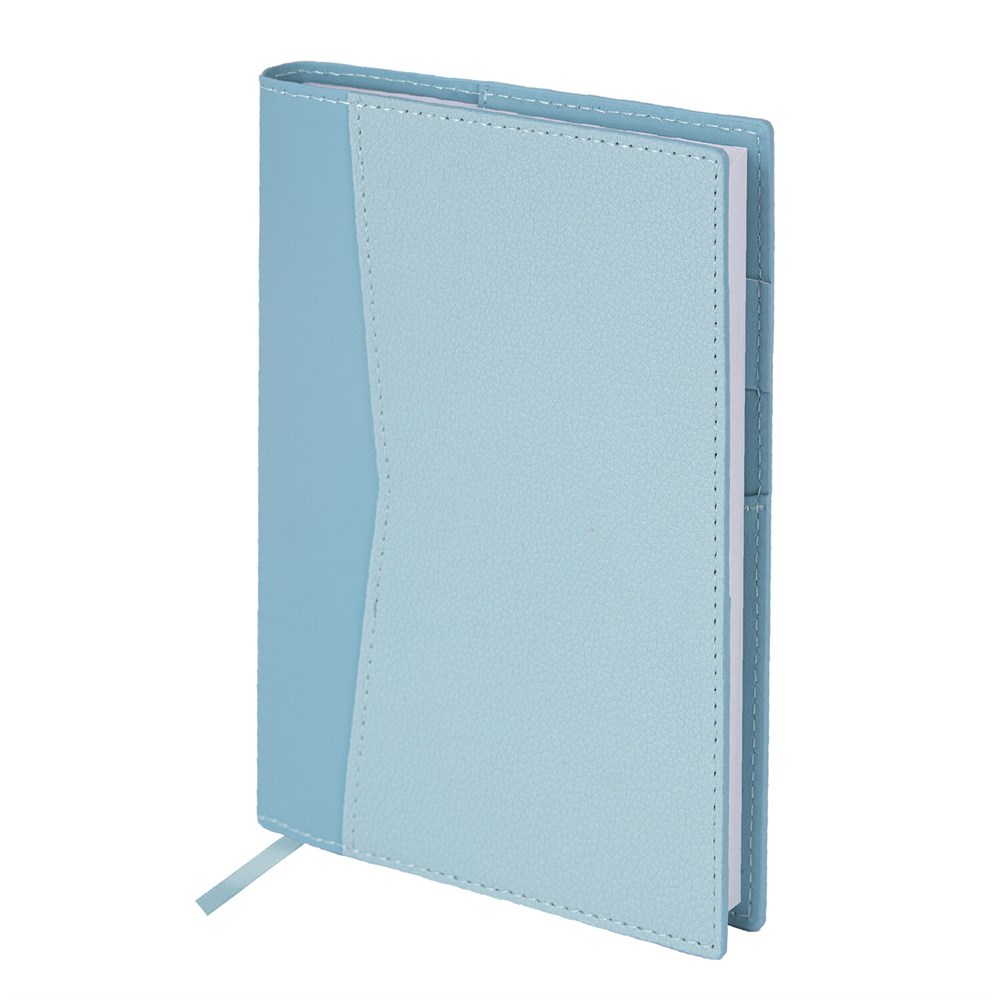 Гибкая съемная обложка стилизована под текстурную кожу. Материал обложки подходит для горячего тиснения. Дополнениями являются закладка-ляссе, с помощью которой при необходимости можно быстро открыть ежедневник на нужной странице, и держатель для ручки. На обложке расположены несколько карманов для карт, визиток или купюр. Справочный материал дополнительно расширяет функциональность ежедневника. В конце внутреннего блока есть 7 страниц для записей и заметок.