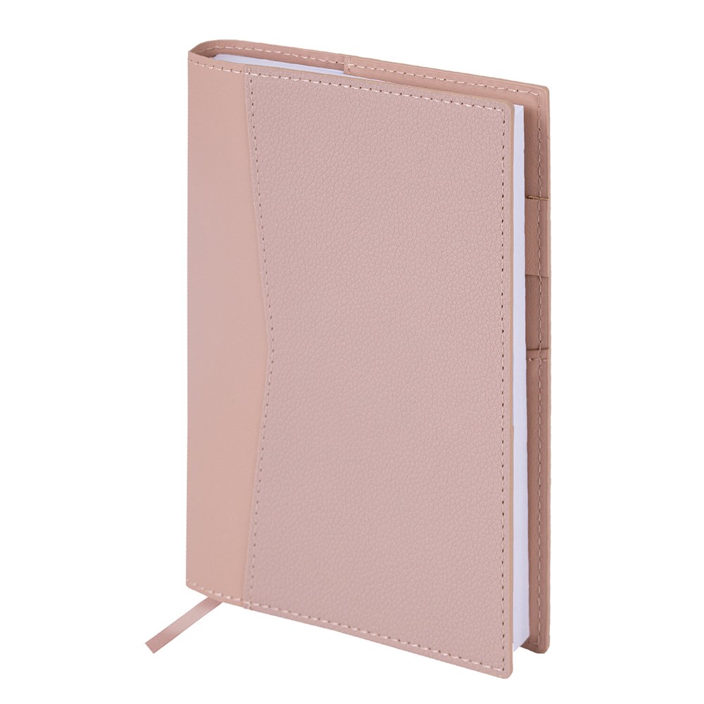 Гибкая съемная обложка стилизована под текстурную кожу. Материал обложки подходит для горячего тиснения. Дополнениями являются закладка-ляссе, с помощью которой при необходимости можно быстро открыть ежедневник на нужной странице, и держатель для ручки. На обложке расположены несколько карманов для карт, визиток или купюр. Справочный материал дополнительно расширяет функциональность ежедневника. В конце внутреннего блока есть 7 страниц для записей и заметок.