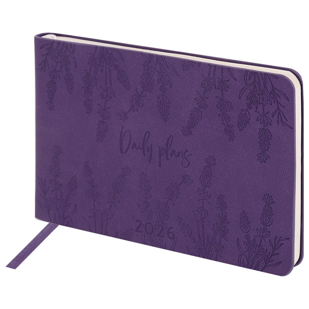 Еженедельник датированный 2026 МАЛЫЙ ФОРМАТ 105х160 мм, А6, BRAUBERG "Imprint", тиснение, фиолетовый, 117210
