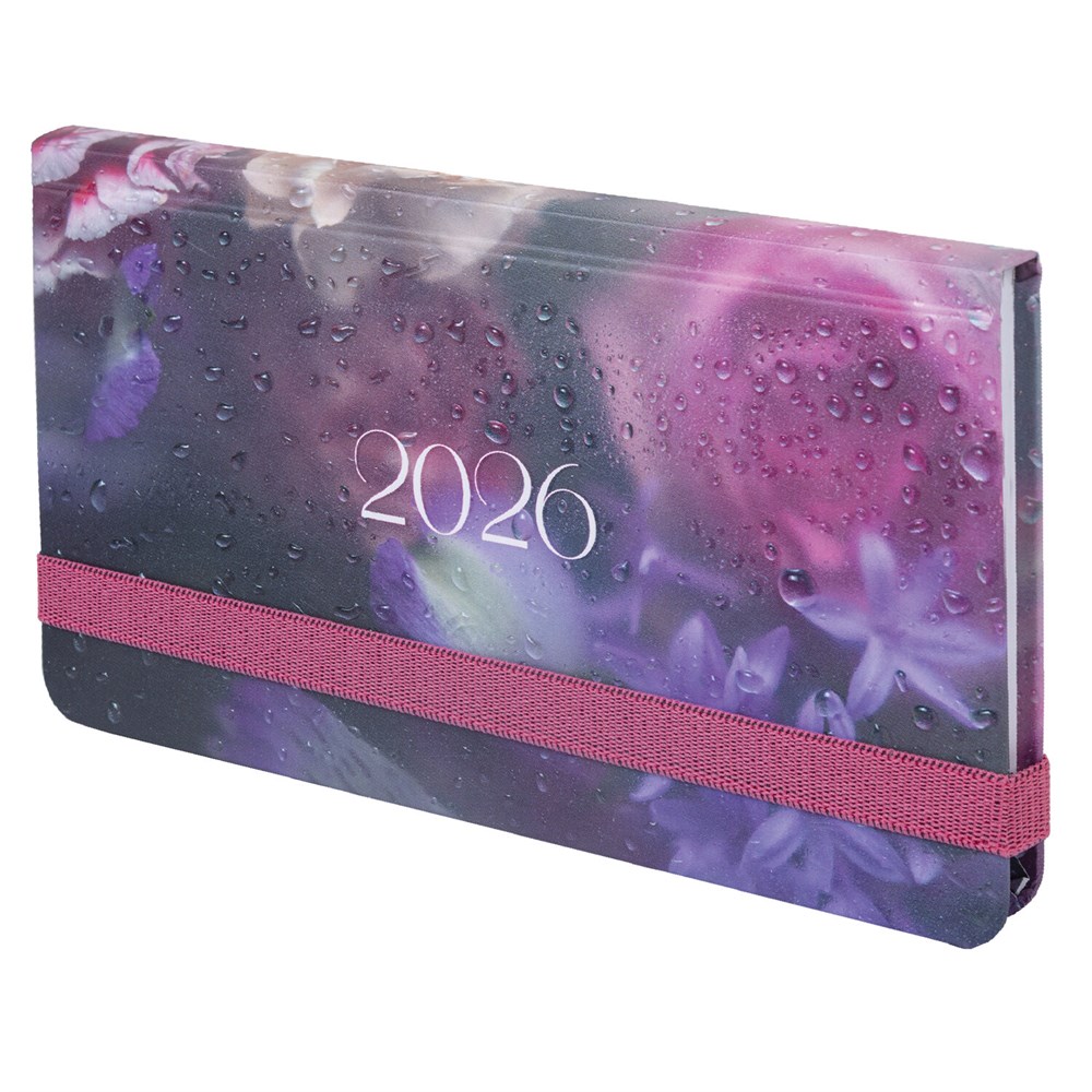 Еженедельник датированный 2026 с резинкой 171х93 мм, BRAUBERG, твердый, УФ-ЛАК, 64 л., "Цветы", 117348