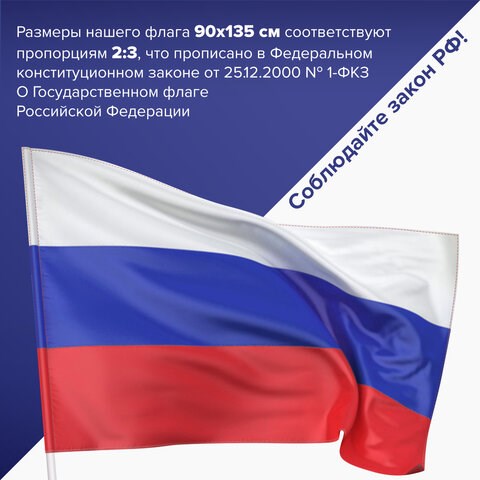 Флаг России 90х135 см без герба, ПОВЫШЕННАЯ прочность и влагозащита, флажная сетка, STAFF, 550227