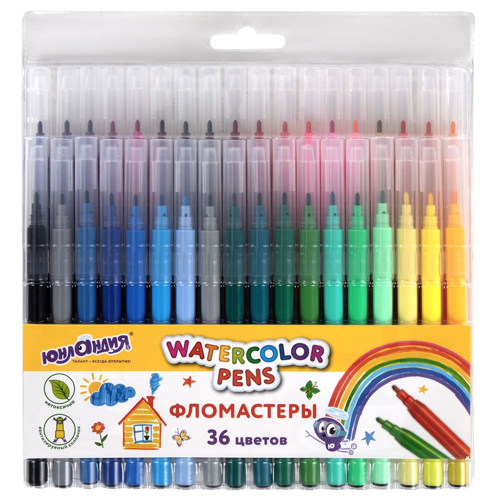 Фломастеры ЮНЛАНДИЯ 36 цветов "КЛАССНЫЕ!", вентилируемый колпачок, 152631