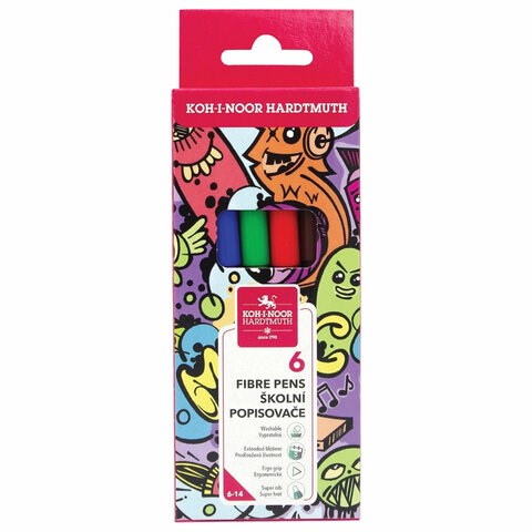 Фломастеры KOH-I-NOOR "TEENAGE" 1002, 6 цветов, смываемые, картонная упаковка, европодвес, 771002JF23KS