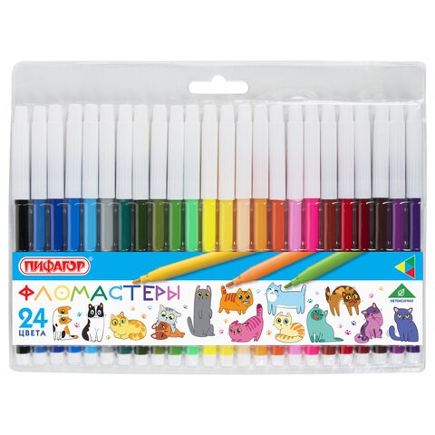 Фломастеры ПИФАГОР "ВЕСЕЛЫЕ ПИТОМЦЫ", 24 цвета, невентилируемый колпачок, 152454