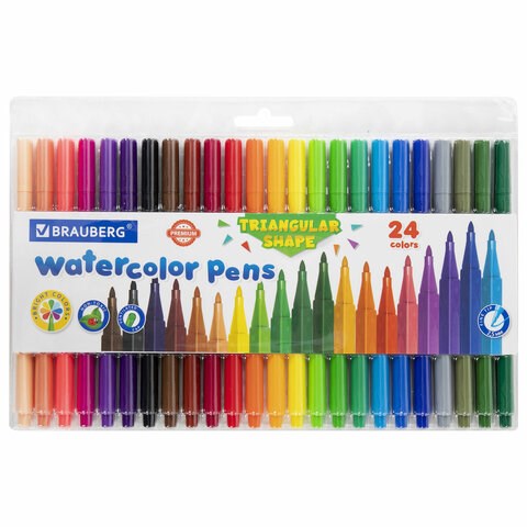 )Фломастеры BRAUBERG PREMIUM - набор из 24 трехгранных фломастеров со смываемыми чернилами на водной основе в ПВХ-упаковке для рисования.