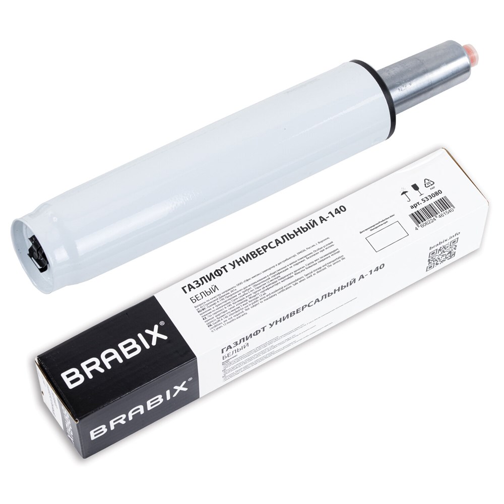Газлифт BRABIX A-140 стандартный, белый, В КОРОБЕ, в открытом виде 413 мм, d 50 мм, класс 2, 533080