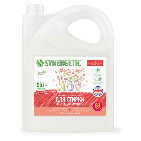 )SYNERGETIC «Магическая орхидея» - это средство для ручной и машинной стирки изделий из различных видов тканей. Не содержит хлора. Входящие в состав компоненты сохраняют характеристики и качество тканей.