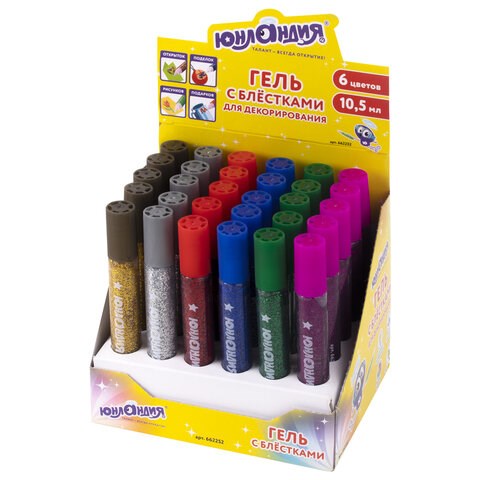 Гель с блестками ЮНЛАНДИЯ, для декора, поделок, DIY, творчества, оформления, 10,5 мл, цвета ассорти, в дисплее, 662252