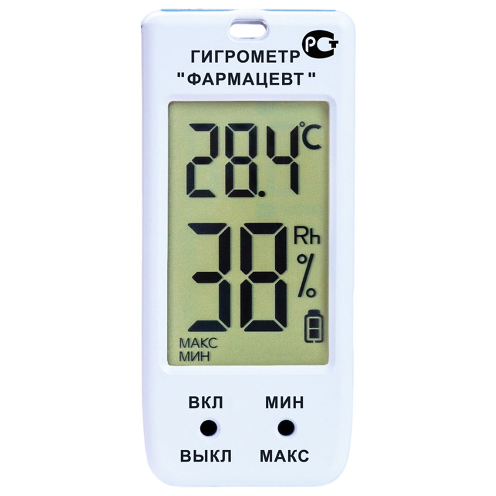 ГИГРОМЕТР - это измерительный прибор, предназначенный для определения влажности воздуха и различных газов. ГИГРОМЕТР "ФАРМАЦЕВТ" является зарегистрированным средством измерения.Гигрометр служит надежным инструментом контроля температуры и влажности в процессах производственного контроля и облегчает работу ответственных специалистов при соблюдения требований установленных Приказами Росздравнадзора №646н, №706н, №9438, условий хранения и транспортировки лекарственных средств, вакцин и термолабильных лекарственных средств, микроклимата помещений лечебных учреждений, СанПин 2.1.3678-20, стандартов GPP и GDP.