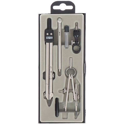 - Комплектация: держатель, кронциркуль, отвёртка, пенал с запасным грифелем, удлинитель, циркуль.