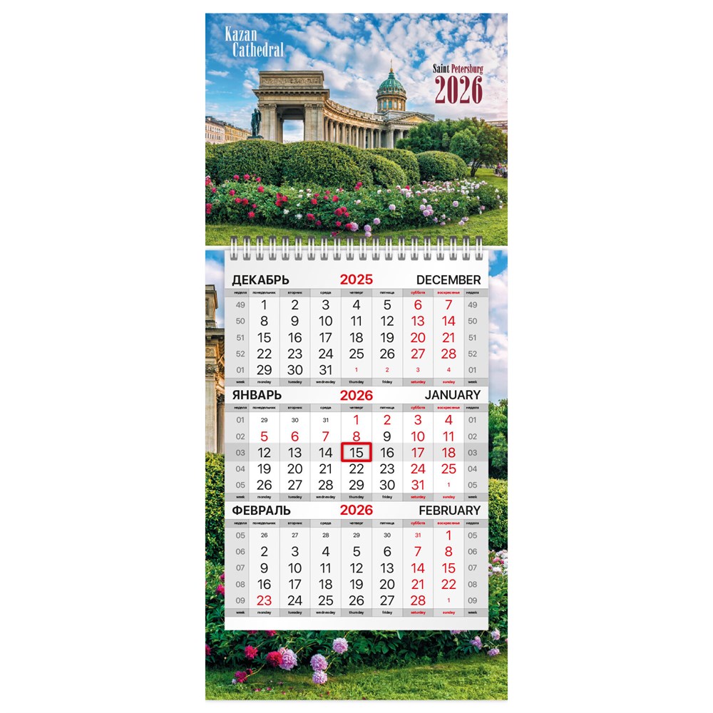 Календарь квартальный 2026 г., 1 блок, 1 гребень, бегунок, МИНИ, офсет, BRAUBERG, "Санкт-Петербург", 116843