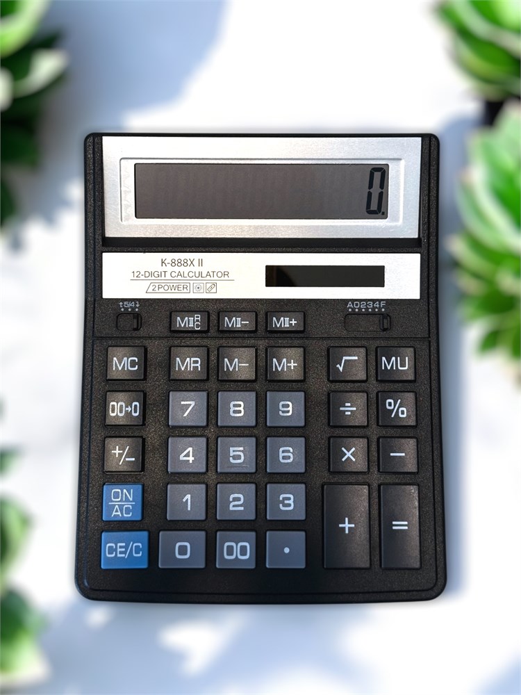Имеет две независимые памяти, возможность установки режимов округления и ограничения количества знаков после запятой, клавишу корректировки последнего знака, клавишу "Два нуля" и клавишу расчета наценки. Разрядность дисплея - 12 выводимых на табло цифр, позволяет работать с крупными числами. Клавиша вычисления MU предназначена для финансовых расчетов с учетом торговой наценки. Также калькулятор поможет быстро рассчитать проценты. Для экономии энергии предусмотрены два источника питания: солнечная и алкалиновая батареи. Выполнен в черном цвете с яркими клавишами, такое сочетание отлично впишется в офисный и домашний интерьер.Высокое качество данной модели представлено по доступной цене.Характеристики:Разрядность дисплея: 12. Серия: К-888ХII. Тип размера: полноразмерный. Тип применения: для бухгалтеров. Стиль: классический. Функционал: вычисление наценки (MU), расчет процентов. Исполнение: настольный. Число строк дисплея: 1. Тип питания: 1 батарейка АА, солнечный элемент. Цвет панели: черный. Длина корпуса: 210 мм. Ширина корпуса: 157 мм. Высота корпуса: 36 мм Бренд - Консул. Товарная марка - Россия. Артикул - 0450. Штрихкод - 4631176771201