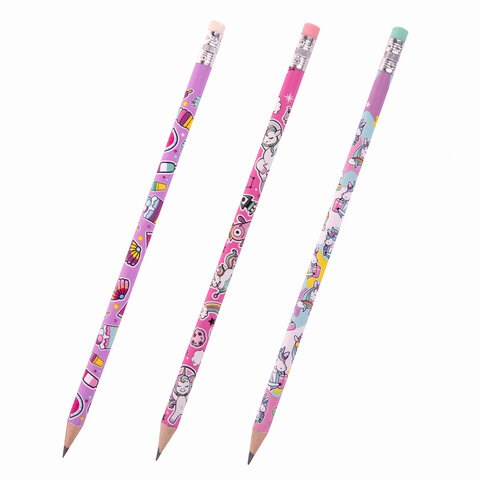Карандаш чернографитный ЮНЛАНДИЯ ЕДИНОРОГИ, 1 шт., HB, с ластиком, корпус ассорти, 181780