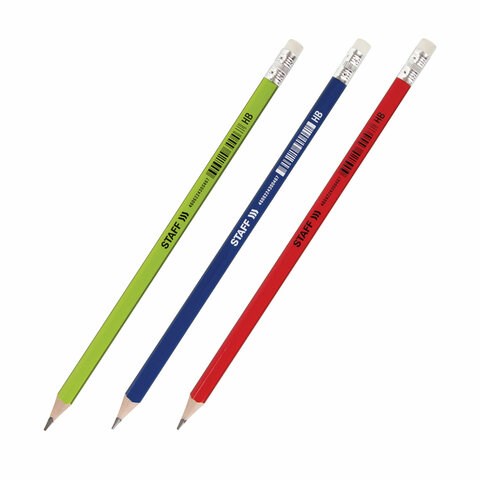 Карандаш чернографитный STAFF Basic BLP-744, 1 шт., НВ, с ластиком, пластик, корпус ассорти, 181744