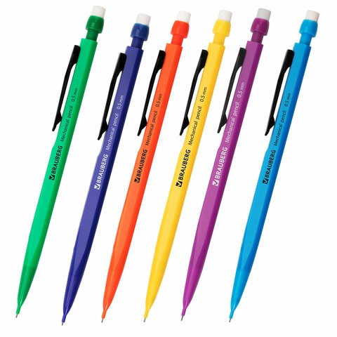 )Механический карандаш BRAUBERG «Classic» с корпусом ярких цветов ассорти.
