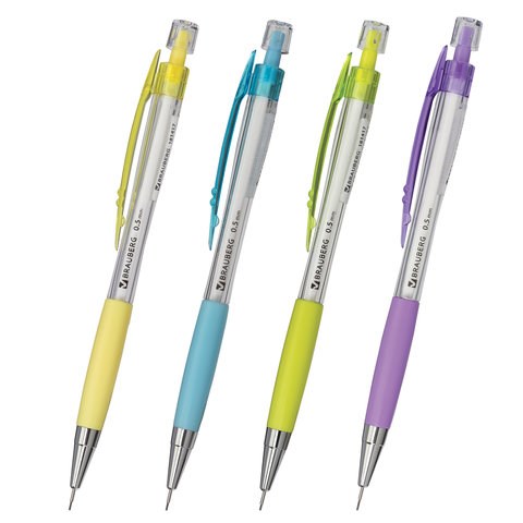 Карандаш механический 0,5 мм, BRAUBERG Elegant, резиновый грип, корпус ассорти, 181417