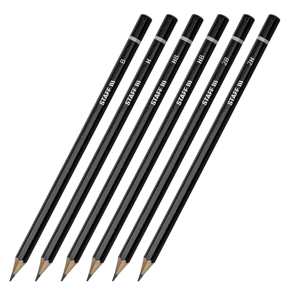Набор чернографитных карандашей STAFF "College" – универсален для дома, офиса и школы. Подходит для чертежей, письма и рисования.Карандаши изготовлены из дерева высокого качества. Имеют шестигранное сечение. Карандаши длиной 175 мм легко точатся и не крошатся. Набор состоит из карандашей различных степеней твердости: 2H – 1 штука, Н – 1 штука, НВ – 2 штуки, В – 1 штука и 2B – 1 штука. Диаметр грифеля – 2,2 мм. Выполнены в черном цвете. Поставляются заточенными.