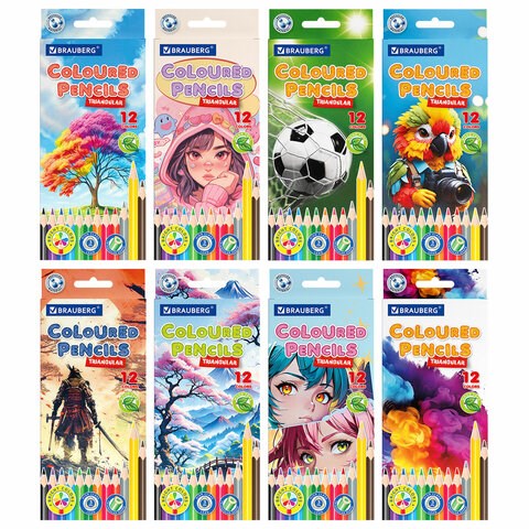 Карандаши цветные "АССОРТИ 8 ДИЗАЙНОВ 7+ лет", 12 цветов, трехгранные, BRAUBERG, 182056