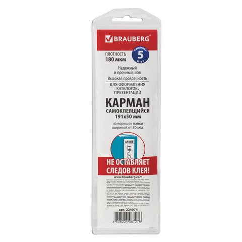 )Самоклеящеся карманы BRAUBERG предназначены для нанесения информации на папки, размещения объявлений, меню и т.д.