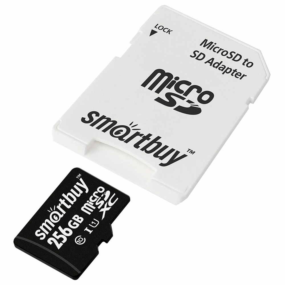 Карта памяти microSDXC 256 GB SMARTBUY, UHS-I, 90 Мб/сек (class 10), с адаптером, SB256GBSDCL10-01