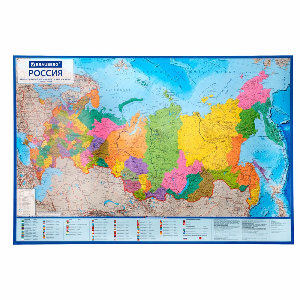 Карта России политико-административная 157х107см, 1:5,5М, интерактивная, европодвес, BRAUBERG, 112397