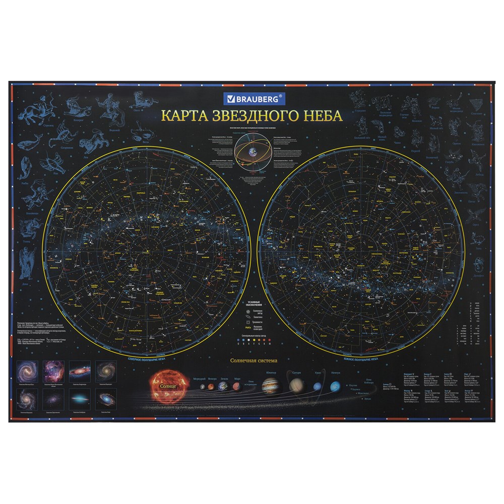 Карта "Звездное небо и планеты" 101х69 см, с ламинацией, интерактивная, в тубусе, BRAUBERG, 112371
