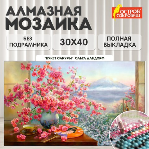 Картина стразами (алмазная мозаика), 30х40 см, ОСТРОВ СОКРОВИЩ, "Букет сакуры", без подрамника, 663862
