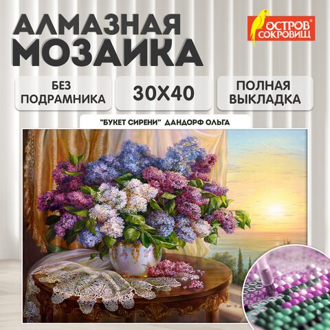 Картина стразами (алмазная мозаика), 30х40 см, ОСТРОВ СОКРОВИЩ "Букет сирени", без подрамника, 663860