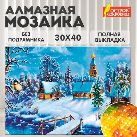 Картина стразами (алмазная мозаика) 30х40 см, ОСТРОВ СОКРОВИЩ "Зимний пейзаж", без подрамника, 662408
