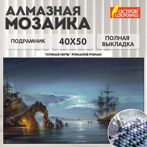 Картина стразами (алмазная мозаика), 40х50 см, ОСТРОВ СОКРОВИЩ "Лунная ночь", на подрамнике, 663872