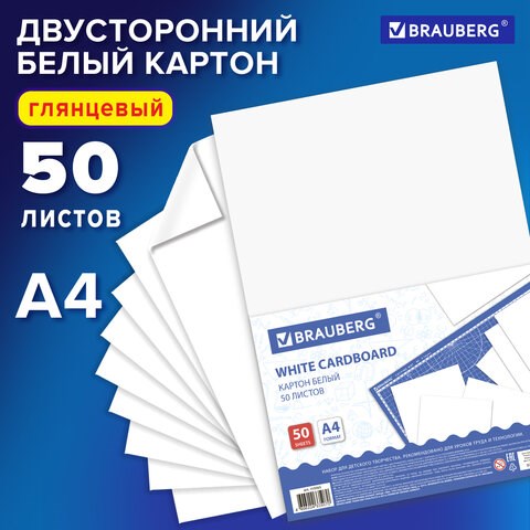 Картон белый А4 МЕЛОВАННЫЙ, 50 листов, BRAUBERG, 210х297 мм, 113563