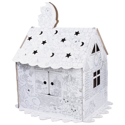 )Картонный развивающий домик-раскраска «Для маленькой принцессы» BRAUBERG KIDS - большой домик для юных художников! В процессе раскрашивания ребенок познакомится с русским алфавитом, счетом, планетами, а также улучшит навыки рисования.