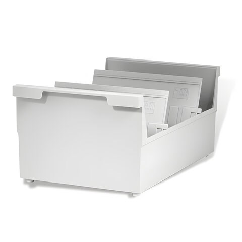 )Горизонтальная открытая перекидная картотека с высокими бортиками подойдет для систематизации и хранения карточек.
