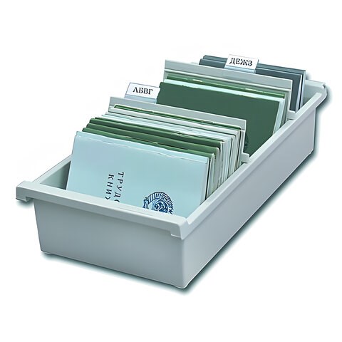 )Горизонтальная открытая перекидная картотека для систематизации и хранения карточек. Рекомендуется для хранения трудовых книжек.