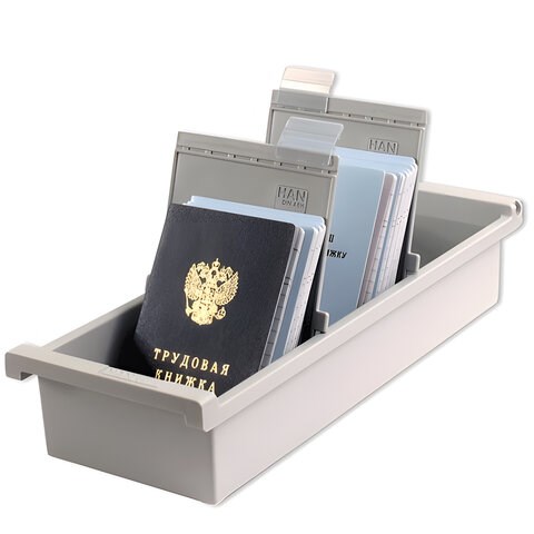Картотека пластиковая ФОРМАТ А6 (148х105 мм) вертикальная на 1300 карт, серая, HAN (Германия), НА956/0/1/11