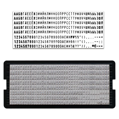 )Касса русских букв и цифр для самонаборных печатей, штампов, датеров TRODAT. В кассе 328 символов, высота букв - 3 мм. Двухножечная система крепления.