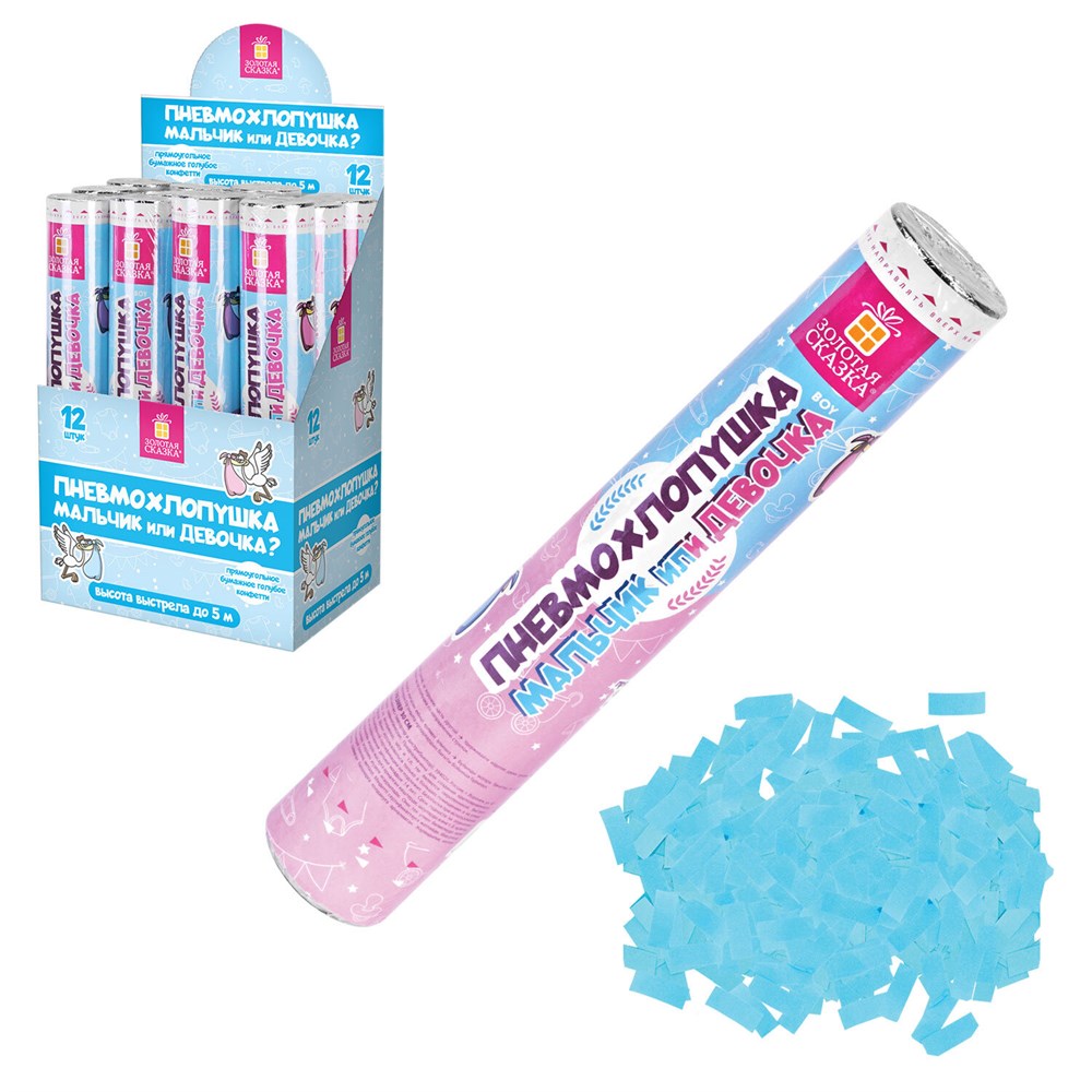 Хлопушка пневматическая 30 см, "Мальчик или девочка", бумага, голубой цвет, ЗОЛОТАЯ СКАЗКА, 592457