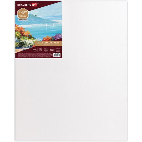 Холст на подрамнике BRAUBERG ART PREMIERE, 50х60см, грунтованный, 100% лен, среднее зерно, 190641