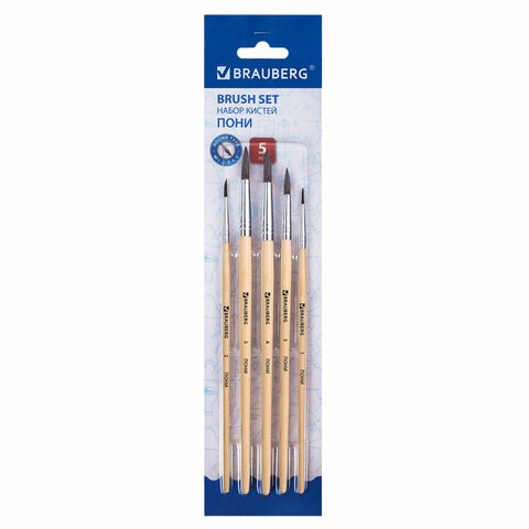 Кисти BRAUBERG, НАБОР 5шт., "Пони", (пони кр. № 1,2,3,4,5), блистер