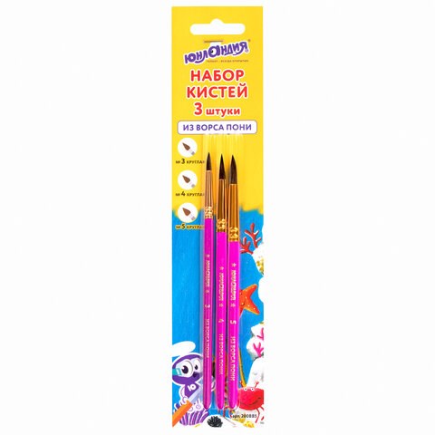 Кисти ЮНЛАНДИЯ, набор 3 шт. (пони, круглые № 3, 4, 5), блистер, 200885